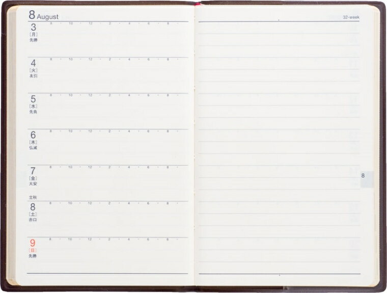 スケジュール欄にはタイム目盛も付いていて、忙しいあなたの予定をしっかり管理します。