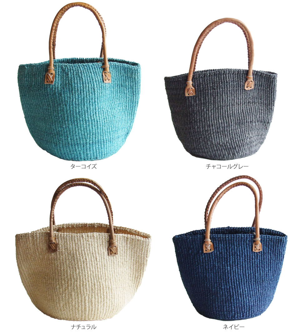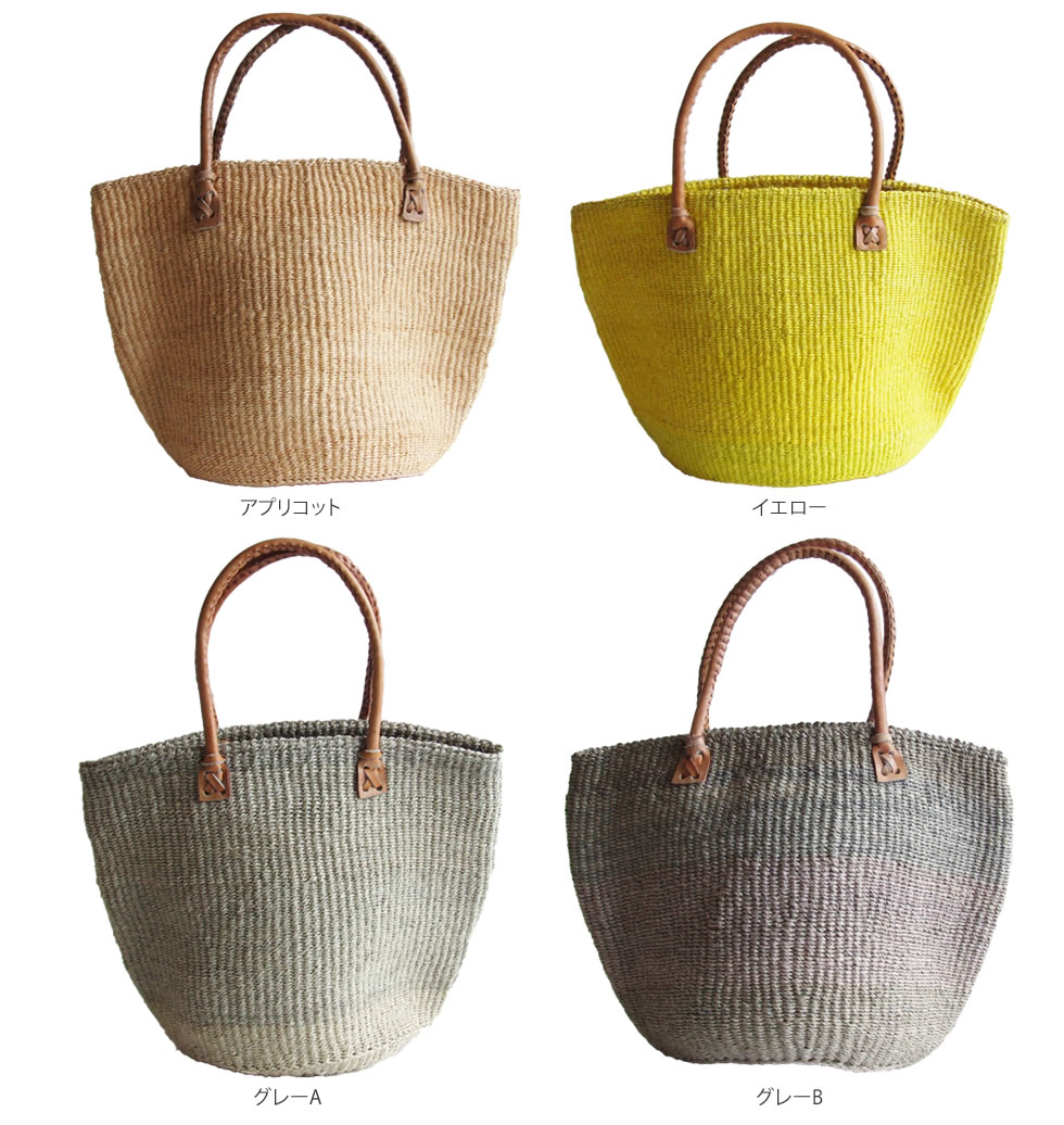 商品の詳細 素材 サイザル麻 サイズ 巾約30〜34cm 高さ約25cm 丸底直径約20cm 持ち手約35cm 生産地 ケニア 注意事項 ●ケニアの情勢により同じ染料を毎回手に入れる事が難しい為、色ぶれのある商品となっております。